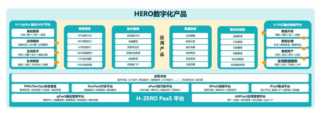 k8凯发官网数字化产品体系HERO,核心包括k8凯发官网H-ZERO企业级PaaS平台、AI中台、H-ONE融合数据平台,以及四大专业应用系列,助力企业高效迈入“数字化转型2.0”