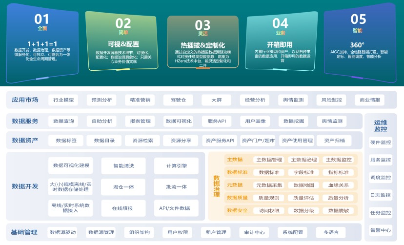 k8凯发官网 H-ONE 融合数据平台,引领企业数字化转型的“大国重器”,助力企业轻松解决数据存储计算,全方位数据治理,数字“黄金资产”-主数据的标准化、规范化管理,实现数据资产智能化运营,为企业构筑起完整而创新的数据要素生态。H-ONE 不仅是一个体系化的数据平台,更是企业数据要素价值的释放者,为您开启数据要素之旅,实现业务的全面升级,激发创新能量,打造数字化成功的新篇章!