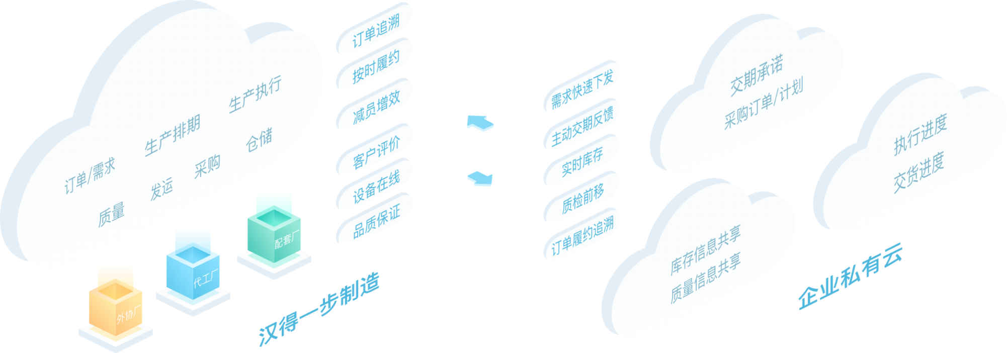 一步制造云围绕核心企业供应商展开供应链深度协同管理。通过将供应商的生产计划、生产进度、质量情况、入库情况等信息纳入平台,让企业实时掌握采购订单的真实备货情况。使核心企业在SRM之外可以深度打通供应链,实时获取订单更多维度、更及时准确的信息,加深企业供应链管控力度。