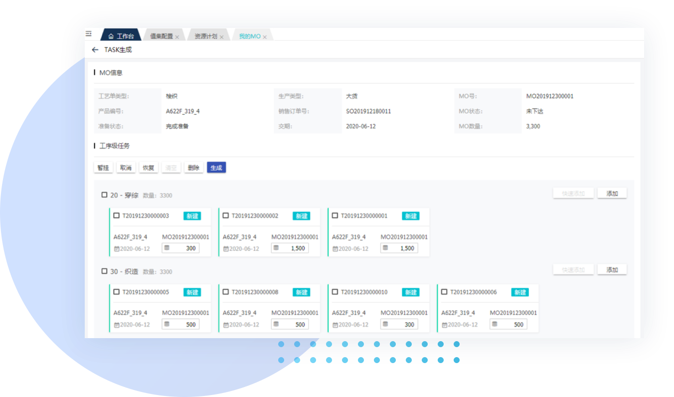 产线、订单优先级管理,需求订单根据优先级自动拆分;产品设备能力约束、设备班次日历约束使排程准确高效;可视化排程管理,实时掌握生产计划进度及异常,调整便捷